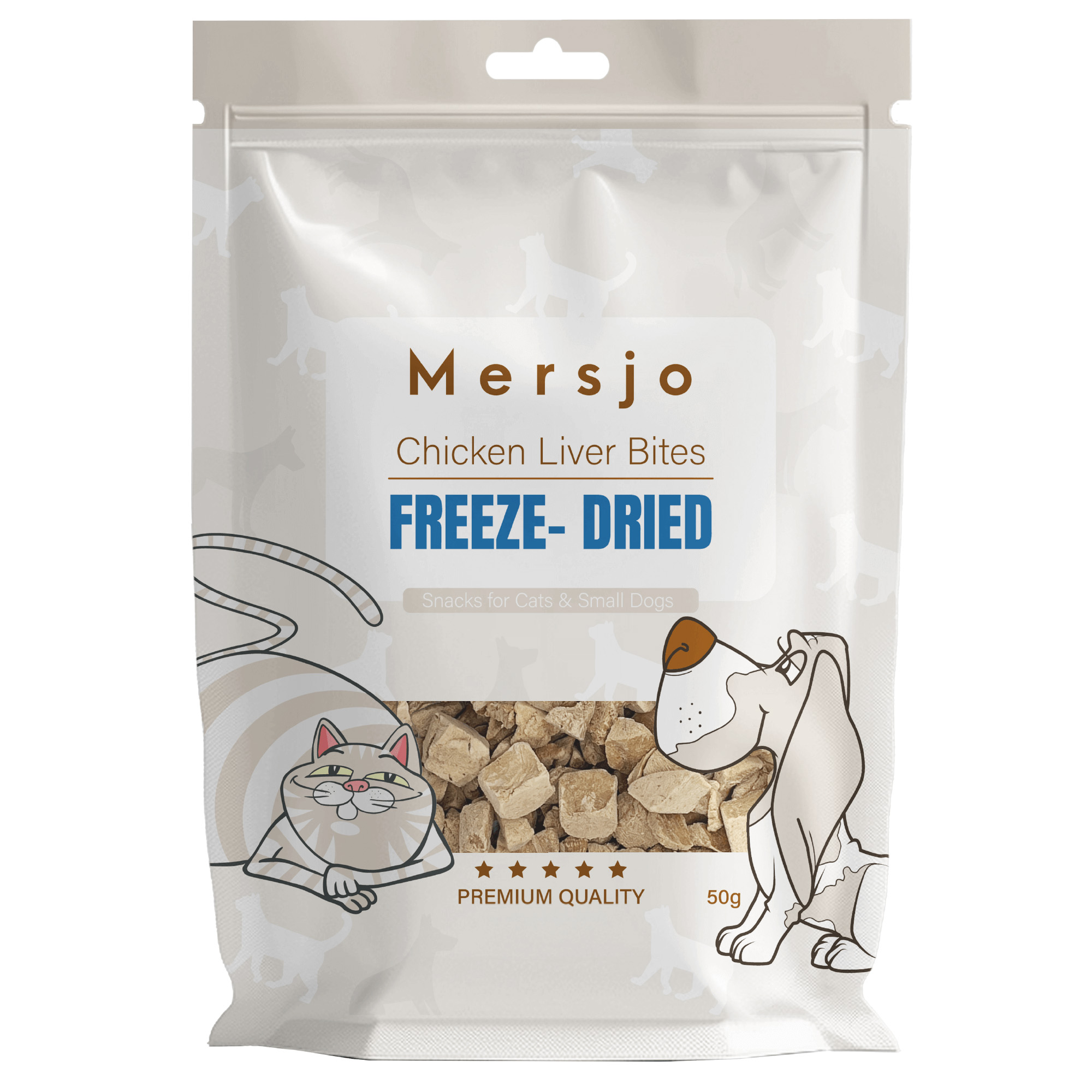 Úvod » Pro zvířata » Pro kočky » Pamlsky pro kočky » Pamlsek pro psy a kočky – Mrazem sušená kuřecí játra Mersjo 50g